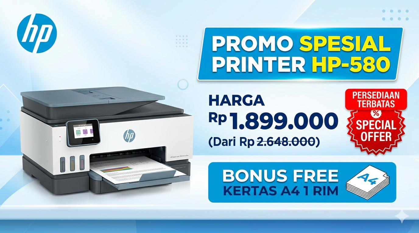 🎉Promo Harga Spesial!! Printer HP-580 Cuma 1 Jutaan?!! GRATIS Kertas A4 1 Rim🎉