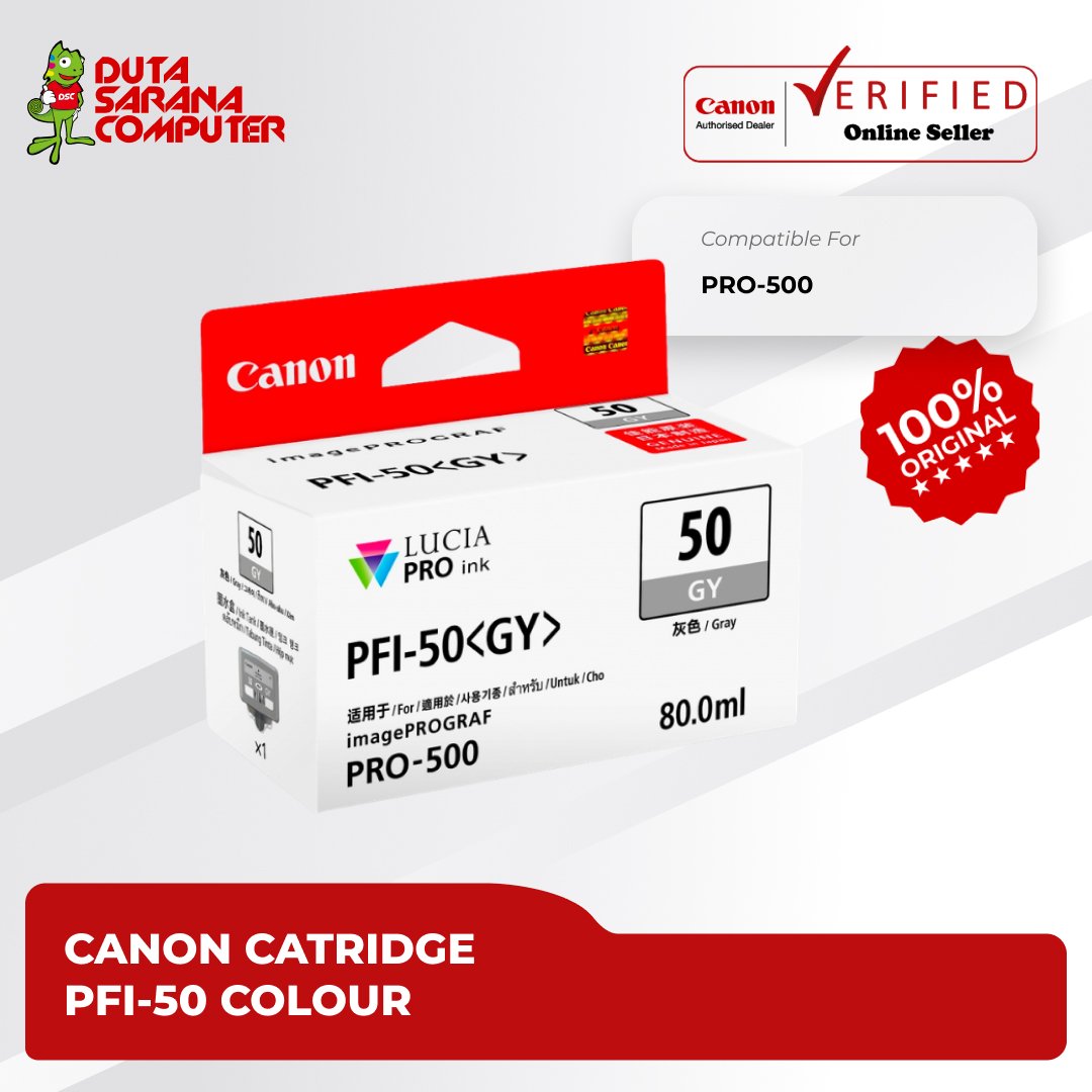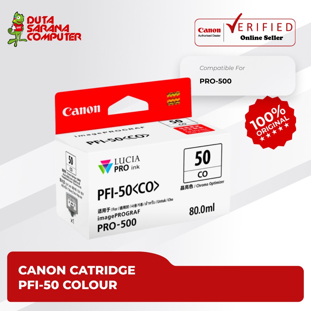 "PFI-50 PM adalah cartridge Photo Magenta untuk printer Inkjet imagePROGRAF PRO-500 Bahan Dasar : Pigmen Luci Pro Menghasilkan hasil cetak warna yang lebih cerah dan nyata. Dapat digunakan pada printer : • imagePROGRAF PRO-500 - 374 halaman ISO/JIS-SCID N5"