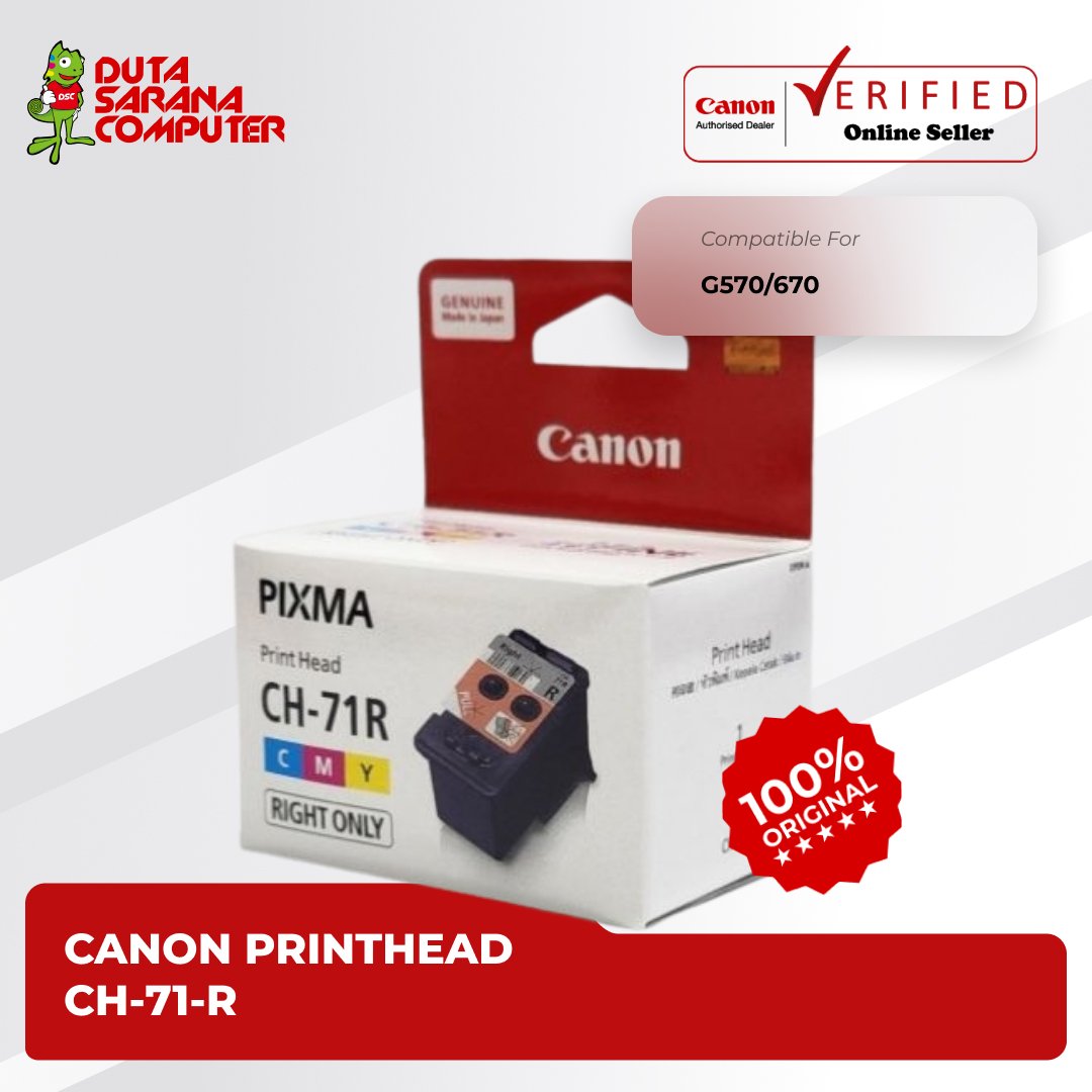 CH-71L & CH-71R adalah Set Print Head Color (bukan Cartridge) untuk printer Canon MegaTank. Kelebihan : • EASY SELF-REPLACEMENT - Dapat diganti sendiri tanpa harus membawa ke Service Center • LOW COST - Hanya perlu mengganti salah satu Print Head (Black/Color), tanpa harus mengganti keduanya (satu set). Dapat digunakan pada printer : • G570 • G670